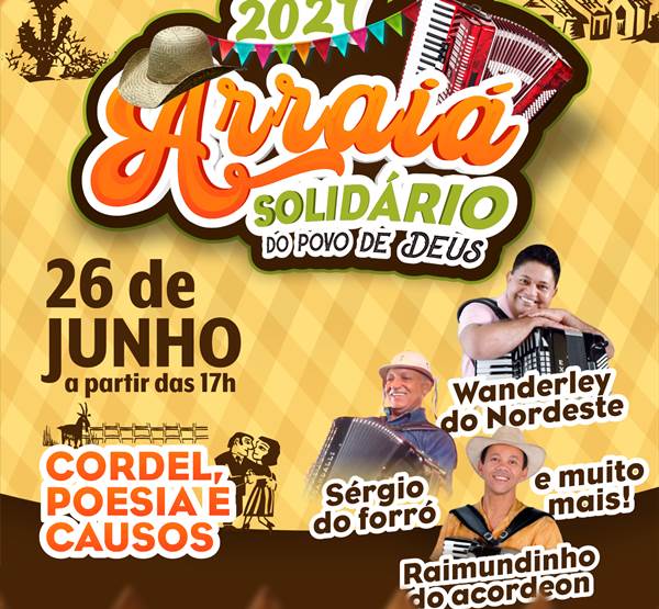 Animação, forró e muita solidariedade. Estes serão os principais ingredientes da 2ª edição do ‘Arraiá Solidário do Povo de Deus’, que acontecerá neste sábado (26). A live é uma realização da Diocese de Juazeiro e pode ser assistida através do Youtube, a partir das 17h. As atrações serão os sanfoneiros da região como Sérgio do Forró, Raimundinho do Acordeon e Wanderley do Nordeste. Na programação haverá ainda a participação de artistas convidados, causos e poesias juninas.