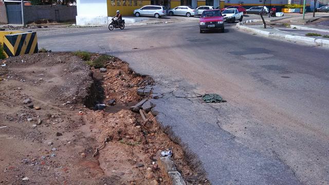 Um trecho da pavimentação asfáltica da avenida, próximo à antiga Sabel, foi corroído pelas recentes chuvas na cidade, semana passada, deixando um buraco de dimensões consideráveis em suas margens.