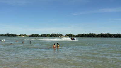 Já tive a oportunidade de trabalhar naquele local e os banhistas estão mesmo muito vulneráveis correndo o risco de acontecer uma tragédia como que aconteceu no litoral paulista, pois as moto aquáticas, conhecidas popularmente como jet`s skis passam muito próximo da área dos banhistas, área essa segundo as normas de navegação só permitido navegar com essas embarcações em comento a 200m da margem das prais no nosso caso rio. É importante ressaltar que nós fazemos trabalhos preventivos de orientação e conscientização tanto para os banhistas como para os pilotos de embarcações em geral, mas é preciso também que se faça trabalhos de fiscalização efetiva por meio dos órgãos competentes principalmente no período das férias e no verão.