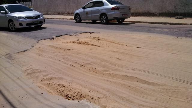 Os motoristas mais desatentos certamente levarão um bom susto se não conseguirem desviar do buraco. Isso se não tiverem algum tipo de prejuízo no veículo. Mesmo assim, até para desviar é preciso também se ligar que a avenida é de mão dupla. Um perigo.