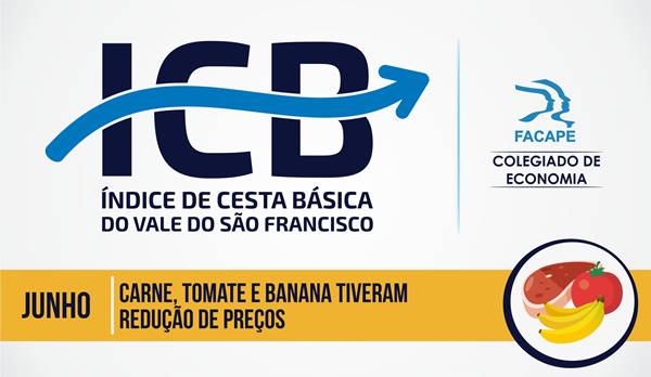 Carne, tomate e banana ajudaram a derrubar o preço da cesta básica em Petrolina (PE) e Juazeiro (BA) em junho último. A constatação foi feita em mais uma pesquisa realizada pelo Colegiado de Economia da Faculdade de Ciências Aplicadas e Sociais de Petrolina (Facape).