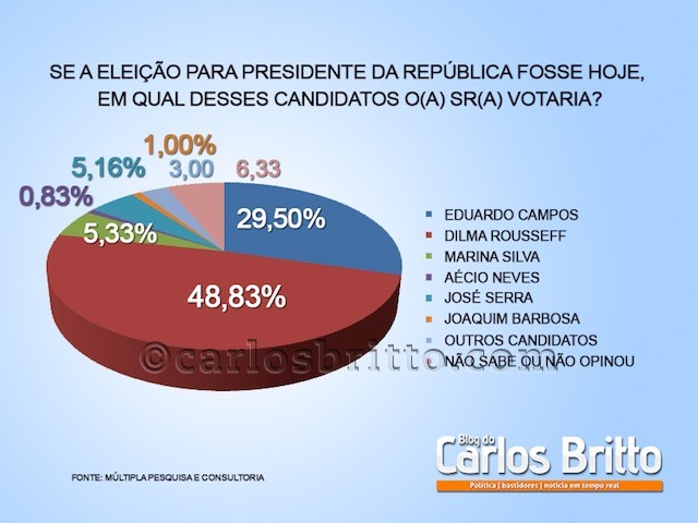 O Blog publica agora a parte de nossa pesquisa, realizada pelo Instituto Múltipla, que pergunta a intenção de votos dos petrolinenses para a Presidência da República. No levantamento, a presidente Dilma Rousselff (PT) bate o governador Eduardo Campos (PSB) com uma boa vantagem na principal cidade do sertão.