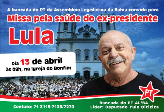 Ainda de acordo com o parlamentar, todos os petistas baianos e simpatizantes do partido e do ex-presidente Lula são convidados a participar desse momento de fé.