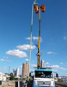 Entre os locais contemplados estão, o viaduto dos Barranqueiros, na região central e as avenidas Cardoso de Sá, na orla, Integração e 7 de Setembro. Para realizar o serviço em postes de até 18 metros de altura, 4 eletricistas contam com a ajuda de dois caminhões, um equipado com guindaste e outro com cesto aéreo. Além de substituição de lâmpadas, serviços como a manutenção de braços, disjuntores e relés fotoelétricos também estão sendo realizados rotineiramente, contando ainda com um trabalho contínuo de inspeção. (Foto: Ascom)