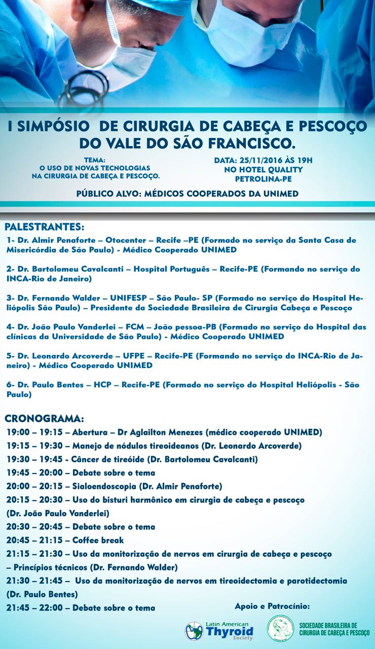 Petrolina sediará o 1º Simpósio de Cirurgia de Cabeça e Pescoço do Vale do São Francisco. O encontro acontecerá no próximo dia 25/10, no Quality Hotel, Orla II, às 19h.