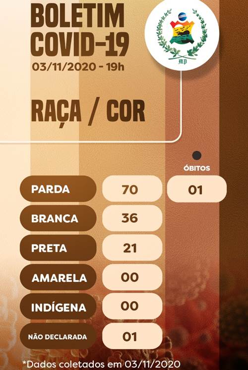 Os dados referentes à raça/cor/etnia dos casos confirmados nesta terça seguem em abaixo. A relação é feita de acordo com as categorias do Instituto Brasileiro de Geografia e Estatística (IBGE): branca, preta, parda, amarela, indígena.