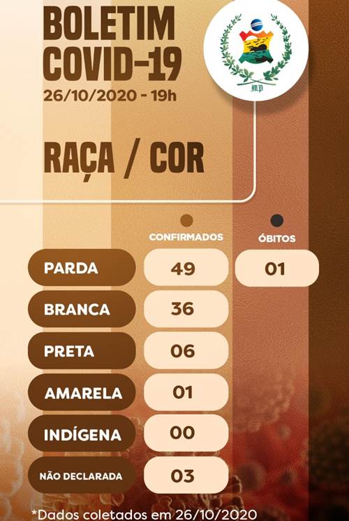 Os dados referentes à raça/cor/etnia dos casos confirmados nesta segunda-feira seguem abaixo. A relação é feita de acordo com as categorias do Instituto Brasileiro de Geografia e Estatística (IBGE): branca, preta, parda, amarela, indígena.