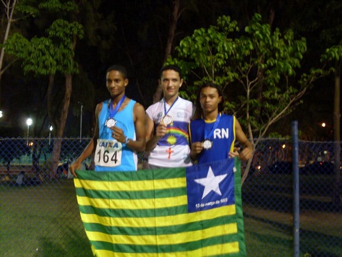 O atleta petrolinense Luciano Verenildo Coelho (ao centro) está sorrindo à toa. Ele conseguiu o primeiro lugar na competição de atletismo Norte/Nordeste, realizada no último fim de semana em Fortaleza, no Ceará.