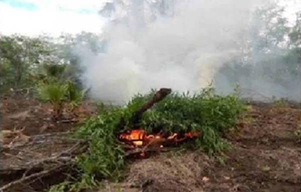 O plantio foi erradicado e incinerado no local, conforme a PM. Uma amostra foi colhida e apresentada na Delegacia de Polícia Civil de Juazeiro. Ninguém foi preso. (foto/divulgação)