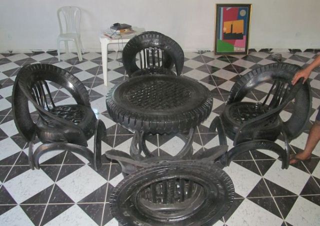 Ainda na escola, o artista começou a transformar em arte os pneus abandonados na borracharia do seu pai, onde atualmente trabalha. “No início comecei a fazer por brincadeira, para presentear amigos e familiares, até que descobri que algumas pessoas vendiam objetos iguais aos meus. Daí resolvi partir para fazer profissionalmente”, conta.