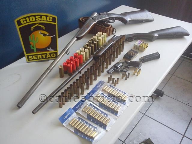 O material – que inclui duas espingardas e um revólver, além de um carregador de pistola 765 e munições de vários calibres – estava escondido dentro de um tubo plástico (tipo PVC) num compartimento da parede da residência do acusado, no bairro Nova Flores. Nego e o armamento apreendido foram encaminhados à Delegacia de Polícia Civil de Serra Talhada (PE), também no Sertão.