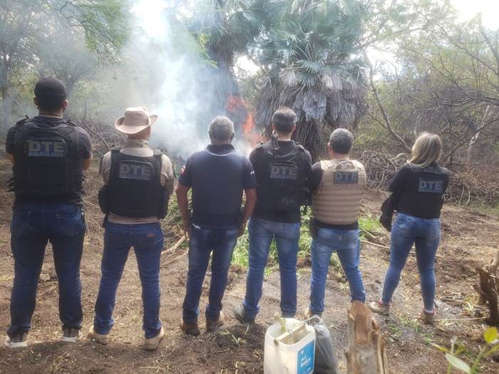 Segundo o boletim, a maconha já estava pronta para a colheita. No meio da plantação foram encontrados baldes, defensivos agrícolas e adubos. Diligências serão retomadas na localidade para identificar e qualificar os responsáveis pela roça.