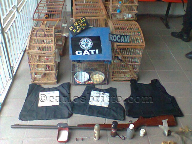 Na casa de seu pai, onde foram encontradas as aves, os policiais ainda apreenderam uma espingarda e várias munições. Segundo informações da 1ª Companhia Independente de Polícia Militar (1ª CIPM), as aves apreendidas foram cancão, concris, galo de campina, patativa golada, azulão e xexexeu.