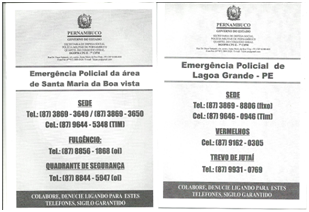 Motoristas, pedestres e comerciantes de Santa Maria da Boa Vista e Lagoa Grande, no Sertão pernambucano, foram surpreendidos esta semana com uma campanha da Polícia Militar de Pernambuco (PMPE) que tem como objetivo divulgar os números dos telefones de emergência da PM. Ao todo, foram entregues 500 panfletos com os telefones da sede e do interior dos dois municípios.