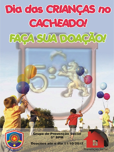 O Dia das Crianças será de muita festa para os moradores do bairro Cacheado, em Petrolina. A comunidade receberá amanhã (12) a visita do Grupo de Prevenção Social (GPREV) da Polícia Militar. A partir das 7h30, haverá distribuição de brinquedos e lanches para os pequenos.