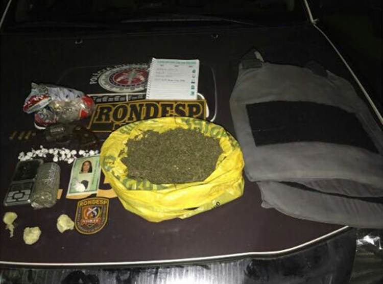 O acusado relatou que um presidiário do conjunto penal da cidade fornece drogas para ele e para essa mulher, moradora do Bairro Piranga. Dando continuidade à ação, os policiais foram até a casa da mulher, onde apreenderam maconha, cocaína e um colete balístico.