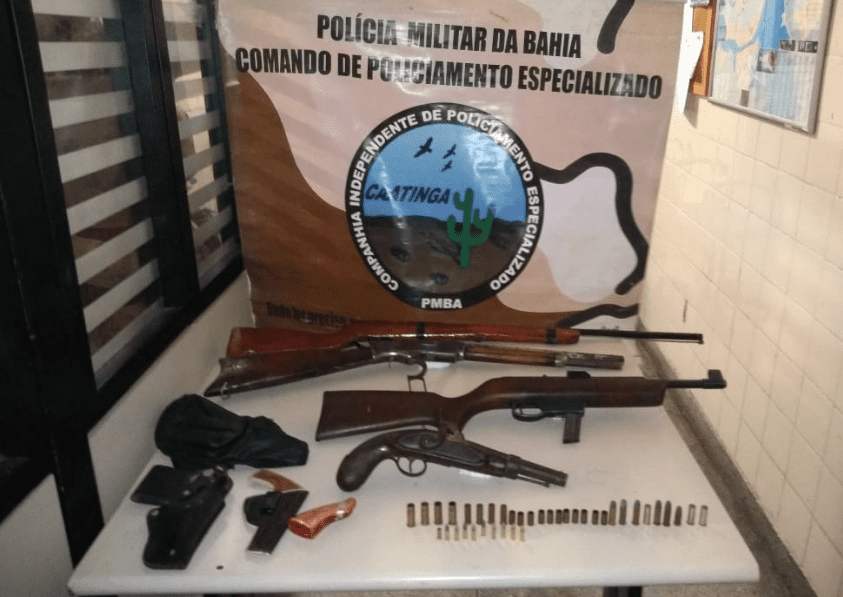 Foram apreendidos dois rifles – um calibre 44 e outro 22 -, uma espingarda e uma garrucha, além de um carregador para armas e munições. Autuado por porte ilegal de arma de uso restrito, ele foi apresentado na Delegacia Territorial de Paulo Afonso, na mesma região.
