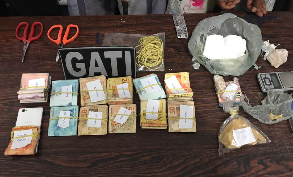 Em ação contínua, as equipes foram até o local apontado e encontraram o dinheiro. Em seguida os policiais foram informados pela namorada de Leandro que, horas antes da abordagem, ele teria entregado 59 pedras de crack para outro menor. Dando continuidade a ocorrência, foi feito a abordagem no menor na Feira do Bairro João de Deus e foi encontrado com ele 59 pedras de crack.