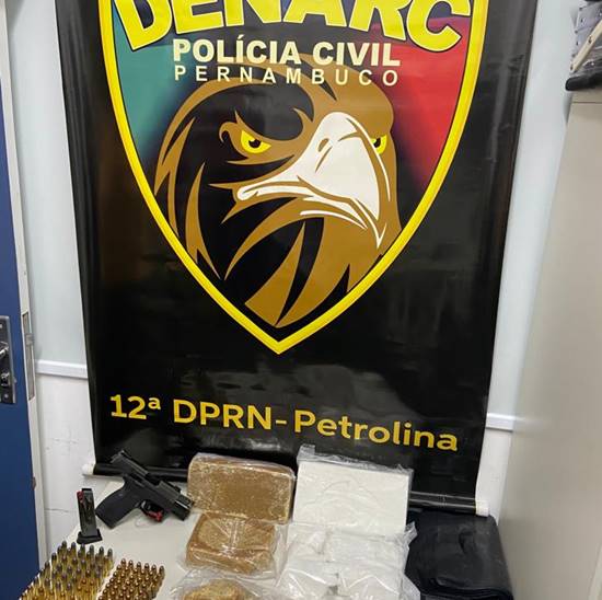 Uma equipe de policiais civis da 12ª Denarc, em Petrolina, conseguiu apreender no final da tarde de ontem (18) o total de 2,180 kg de cocaína e 2,062 kg de crack, além de uma pistola calibre 380 e 121 munições, duas balanças de precisão e uma motocicleta Honda Fan 150 (clonada). Investigações em curso há aproximadamente 15 dias apontavam a prática do tráfico por parte de uma mulher, que guardava droga em sua residência no Bairro Quati (zona oeste da cidade), a mando de outro traficante.