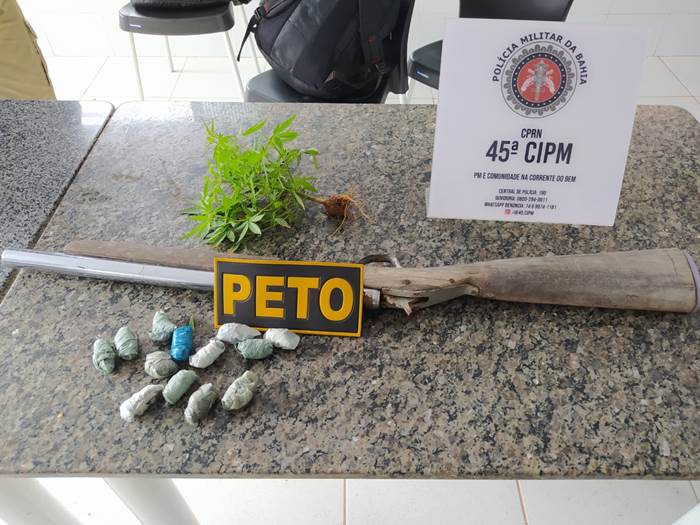 Dentro da casa a polícia encontrou 13 papelotes de maconha e mudas da erva, além de uma espingarda caseira calibre 12. Todo o material apreendido, bem como os suspeitos, foram encaminhados à 1ª DT de Juazeiro (BA) para os procedimentos cabíveis. Um dos envolvidos foi preso em flagrante e os outros liberados.