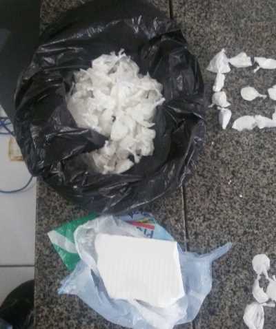 Ele contou à polícia que uma pessoa lhe telefonou pedindo que pegasse “uma encomenda” numa loja localizada na Avenida Sete de Setembro, Bairro Jardim Maravilha, na zona oeste. A tal encomenda, segundo a testemunha, seria uma antena parabólica. Mas ao chegarem ao local para fazer o flagrante, os policiais não encontraram ninguém. Na caixa, onde deveria estar a antena, havia 198 petecas de cocaína totalizando 110 gramas, e mais uma pedra de 150 gramas da mesma droga. A equipe ainda tentou localizar os suspeitos, mas sem êxito. Todo o material apreendido, além da testemunha, foi encaminhado à 1ª Delegacia de Polícia Civil (DPC). (foto: 5°BPM/divulgação)