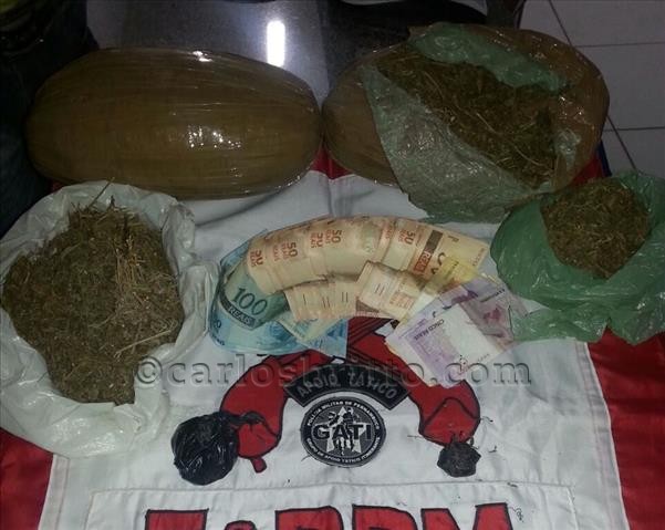 Além dos 2,32 quilos de maconha, a polícia também achou a quantia de R$ 2.090 – dinheiro provavelmente oriundo do comércio da droga.