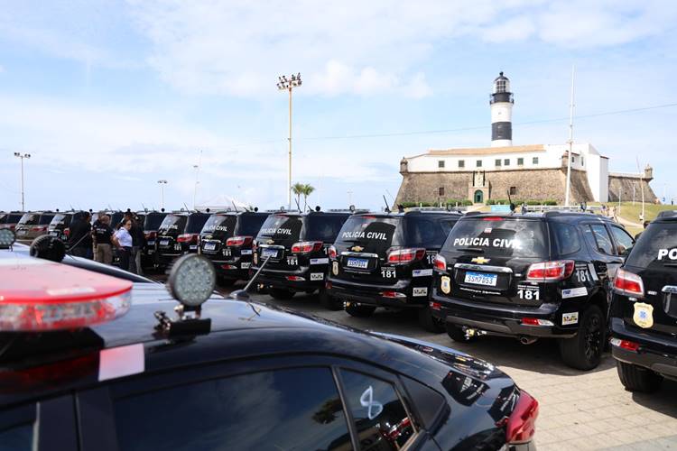 As polícias Militar, Civil, Técnica e Rodoviária Federal receberam, na manhã de sexta-feira (18), uma frota de 127 novas viaturas – algumas delas semiblindadas, para reforçar o combate ao crime organizado. Investimento de R$ 25 milhões, a entrega aconteceu no Farol da Barra, em Salvador.