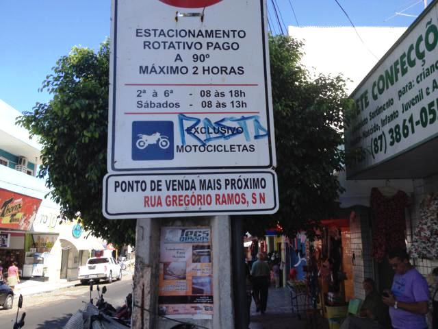 A Prefeitura de Petrolina abusa da “criatividade” para vender o famigerado bilhete da Zona Azul. Em um desses pontos, a placa de venda do sistema destaca “sem número”, como a foto acima destaca.