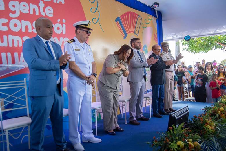 Ao som da fanfarra da Escola Dois de Julho, do distrito de Maniçoba, a cerimônia oficial do aniversário de 144 anos de Juazeiro (BA) aconteceu na Orla II, na área do Vaporzinho, na manhã desta sexta-feira (15), e levou um grande público ao local. O evento contou com a presença da prefeita Suzana Ramos, do vice-prefeito licenciado Leonardo Bandeira, além de representantes da Capitania dos Portos (Marinha), polícias Militar e Civil e Guarda Civil Municipal (GCM).