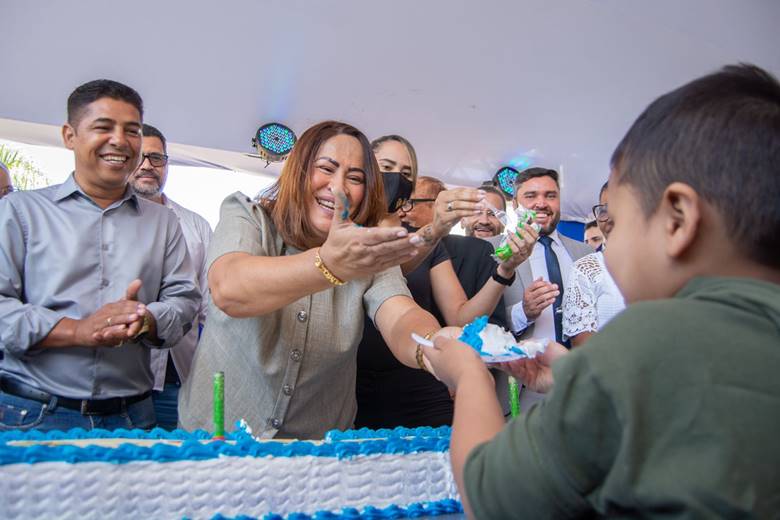 A população também pôde se deliciar com um bolo gigante, que foi preparado especialmente para as comemorações do aniversário da cidade. A própria Suzana Ramos serviu o público que esteve presente na Orla, formado por crianças e adultos.