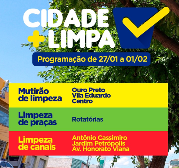 A ação busca promover a retirada de lixos e entulhos que possam obstruir o sistema de escoamento e venham a causar possíveis alagamentos nas ruas. Desde o final de 2019, mais de 10 bairros no município receberam a limpeza, que faz parte do programa ‘Cidade Mais Limpa’.