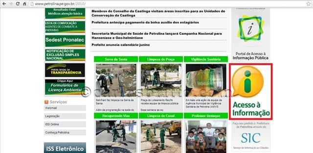 Para conferir o portal, a assessoria justifica que os internautas devem clicar no link http://acessoinformacao.org.br/pe/petrolina/. A porta de acesso é o banner “Acesso à Informação”, no site institucional da prefeitura (www.petrolina.pe.gov.br).