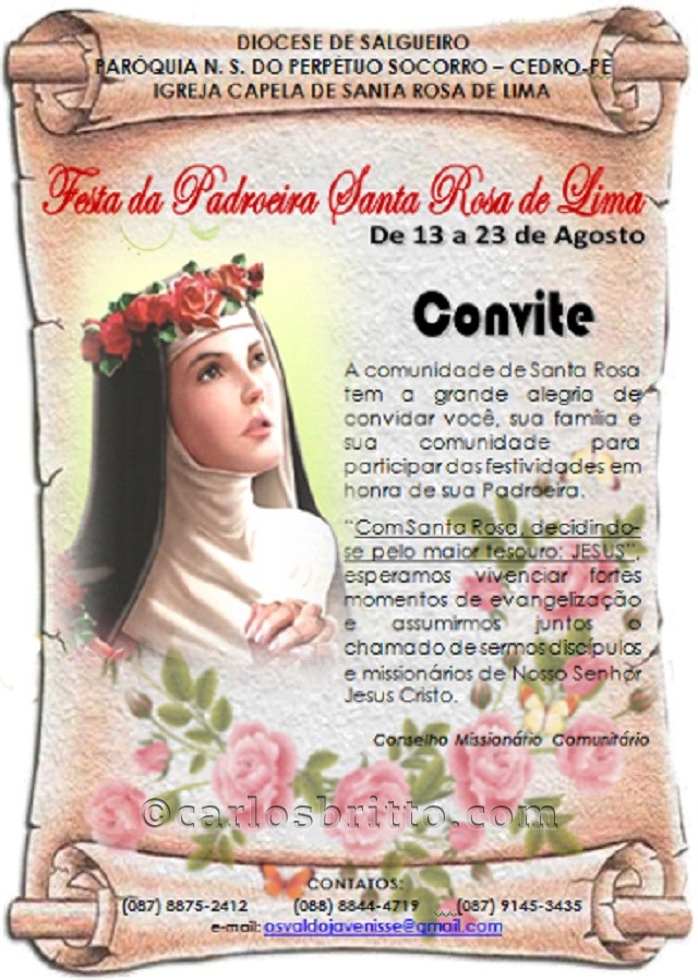 O povoado de Santa Rosa, na zona rural de Serrita (PE), Sertão Central, dará início nesta quarta-feira (13) às festividades da Padroeira Santa Rosa de Lima, Padroeira da América Latina.