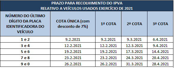 Os proprietários de veículos em Pernambuco já devem ficar atentos ao prazo de pagamento do Imposto sobre a Propriedade de Veículos Automotores (IPVA). O contribuinte que possui algum veículo com término da placa 1 e 2 tem até a próxima terça-feira (9) para efetuar o pagamento da primeira parcela, caso opte pelo parcelamento, ou da cota única. Já para os veículos de final 3 e 4 o vencimento é na sexta-feira (12). Quem optar pelo pagamento à vista terá um desconto de 7%.