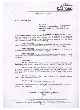O prefeito Eudes Caldas (PTB) renovou, na última terça-feira (10), o decreto de situação de emergência por mais 90 dias em Cabrobó (PE), sertão do São Francisco, devido à rigorosa seca deste ano.