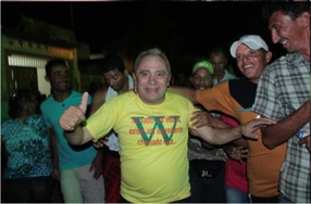 O prefeito eleito de Casa Nova (BA), Wilson Cota (PMDB), comemorou no mais tradicional estilo a vitória esmagadora decretada nas urnas no último domingo (7): foi para os braços do povo.