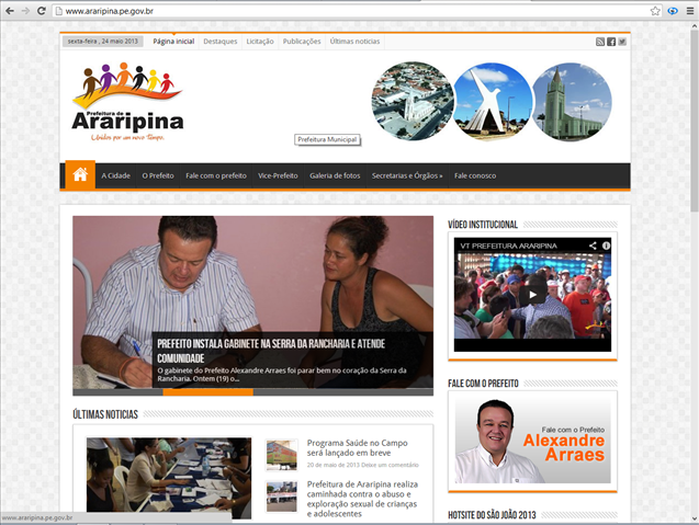 Depois do matadouro e da Autarquia Educacional do Araripe (Aeda), o Ministério Público de Pernambuco (MPPE) expediu mais uma recomendação à Prefeitura de Araripina, no Sertão do Estado. Desta vez, a medida também se estendeu à Câmara de Vereadores e às secretarias municipais de Saúde e Educação, que deverão criar ou atualizar os sites eletrônicos oficiais, nos moldes da Lei 12.527/2011. A recomendação levou em consideração a Lei de Acesso à Informação, que obriga os gestores de órgãos e entidades públicas a criarem endereços eletrônicos.