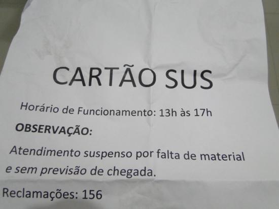 Como isso pode ter acontecido se na quatra-feira 05/12/12 fiz o meu cartão e o da minha família lá no centro de convenções e não vi nenhum cartaz desse lá? Pelo contrário fui muito bem atendida, cadastrada estou com o meu cartão em mãos para ser atendida em qualquer unidade de saúde.
