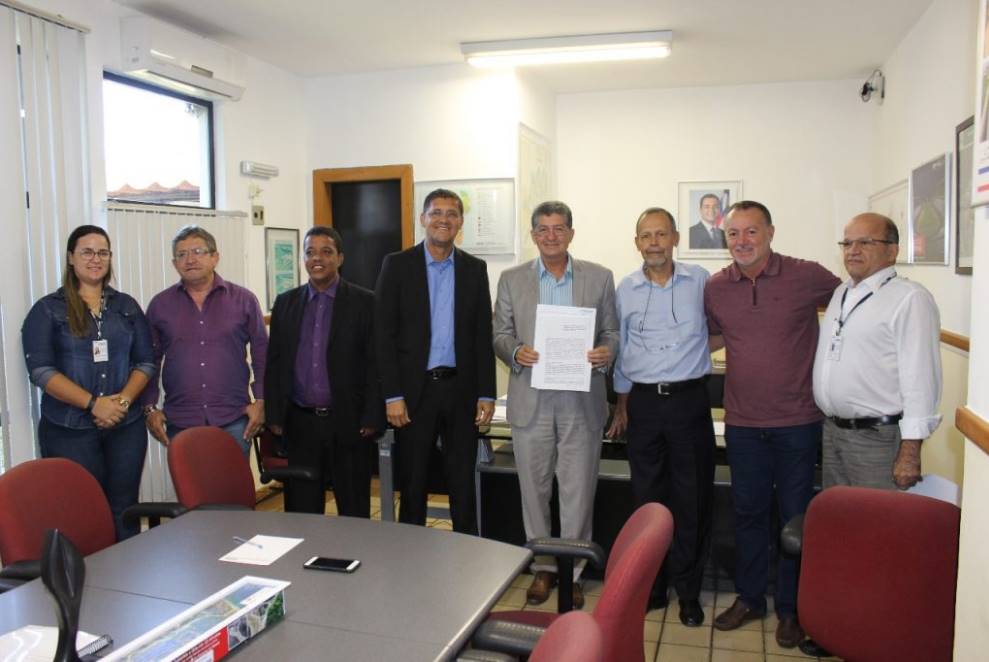 Durante a celebração do convênio que garante investimentos de R$ 847.422,49, com o presidente da Companhia de Desenvolvimento Urbano do Estado da Bahia (Conder), José Lúcio – Brasileiro estava acompanhando do deputado estadual Bobô e dos Vereadores Andreilton Almeida e Reinaldo José.