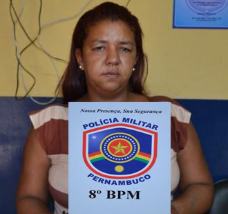 Karla foi presa e encaminhada à Delegacia de Polícia Civil (DPC) local. Em seguida foi levada à Cadeia de Verdejante, onde deve ficar à disposição da Justiça. A ação para prender a mulher contou também com policiais civis do município. (foto: 8°BPM/divulgação)