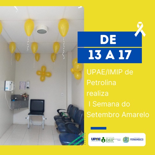 Teve início na última segunda-feira (13), na Unidade de Pronto Atendimento e Atenção Especializada (UPAE) de Petrolina, a primeira Semana do ‘Setembro Amarelo’. O evento foi iniciado com a palestra da psicóloga do serviço Tatiany Torres, às 15h, e segue até sexta-feira (17) com uma programação voltada para funcionários e colaboradores.