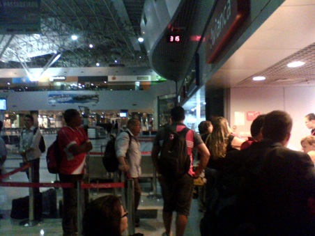 A partir daí, começou o sofrimento: a cada dez minutos o piloto avisava aos passageiros que o problema seria logo resolvido, mas tiveram de passar cerca de uma hora e meia ainda na pista, dentro do avião. Foi então que o piloto decidiu que não havia condições de voar e pediu para todos desembarcarem.