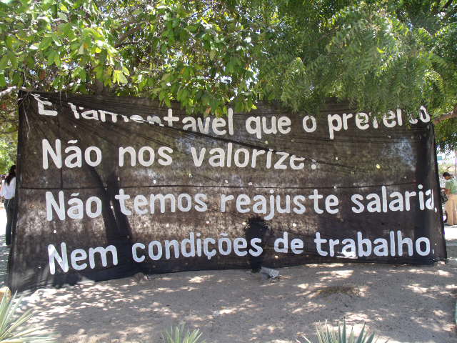 A luta tb engloba a valorização profissional com formações condizentes com o nível de conhecimento (não subestimando o QI dos professores), formações “pro forma” q já estão desfocadas diante dos ensejos de todos, como tb por melhorias nas escolas, principalmente das salas de aula, quentissímas diante do nosso clima causticante, chegando a professores e alunos passarem mal diante de tanta quentura, dificultando o ensino-aprendizagem. Ninguém consegue raciocinar diante de tanto desconforto !!!!!