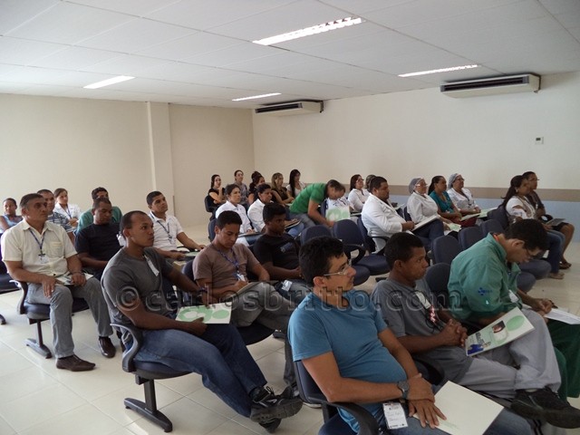 A oficina trabalhou a relação de segurança do trabalho e cuidado com os pacientes, enfatizando questões como o transporte em maca e cadeiras de rodas, uso de Equipamentos de Proteção Individual (EPIs), posturas que se devem adotar, biossegurança, acolhimento e cuidado humanizado.