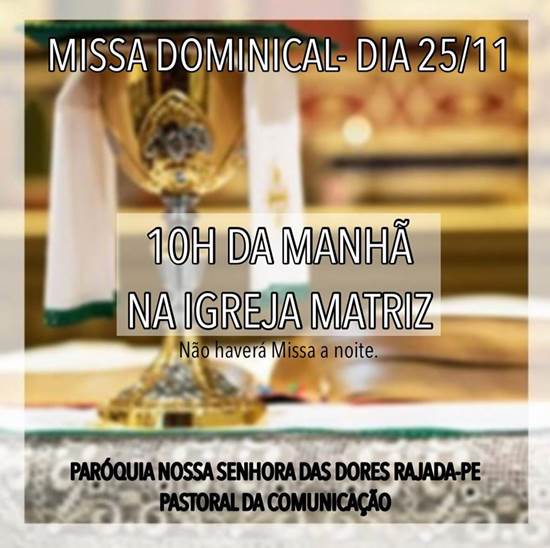 Em virtude da programação alusiva aos 95 anos da Diocese de Petrolina, neste domingo (25), a Paróquia Nossa Senhora das Dores, localizada no distrito de Rajada, zona rural da cidade, fez uma mudança extraordinária no horário da missa de amanhã.
