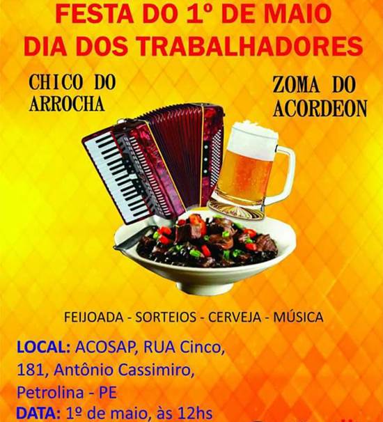 Já na terça, o feriado será comemorado com uma deliciosa feijoada para os associados, regada a cerveja gelada, sorteio de brindes e muita música, que ficará a cargo de Chico do Arrocha e Zoma do Acordeon. O evento acontecerá na Acosap (Rua 5, nº 181, Bairro Antonio Cassimiro).