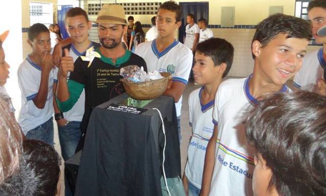 Uma das oficinas oferecidas durante o projeto trouxe uma reflexão sobre a preservação do meio ambiente, através do teatro lambe-lambre, também conhecido como miniteatro e teatro de caixa.