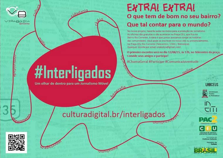 Jovens com idades entre 18 e 24 anos podem se inscrever para o projeto ‘#Interligados’, que será realizado no bairro Rio Corrente, zona oeste de Petrolina, e oferecerá aulas de conteúdo jornalístico. O projeto tem como objetivo proporcionar aos participantes a possibilidade de conhecer os meios de produção de conteúdo para mídias, para assim explorar a diversidade cultural existente na sua própria comunidade. Os moradores serão convidados a retratar suas histórias e vivências partindo das experiências cotidianas da sua região.