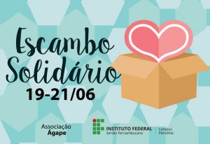 O Campus Petrolina do Instituto Federal do Sertão de Pernambuco (IF Sertão-PE) está realizando um atividade para ajudar a Associação Ágape – entidade que acolhe dependentes químicos em recuperação, através da doação de roupas, utensílios domésticos, objetos decorativos, entre outros, desde que estejam em bom estado, para serem trocados por alimentos não perecíveis.