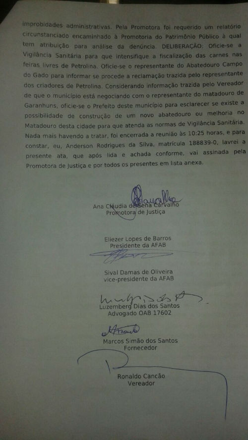 Na reunião de hoje, o vereador revelou que a promotora do MPPE já retrocedeu um pouco em sua decisão de fechar o matadouro de imediato, após tomar conhecimento desse detalhe. Ana Cláudia vai cobrar de Lossio informações sobre a possibilidade de investimentos desse grupo no atual matadouro, promovendo melhorias necessárias que atendam as normas da Vigilância Sanitária ou se será preciso construir um novo equipamento.